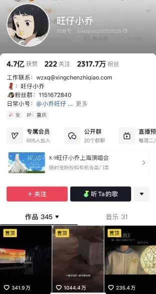 千万粉丝网红“旺仔小乔”上海演唱会开票2天仍没卖完,近期因演唱会不露脸引热议
