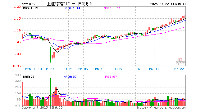 上证综指ETF(510760)业绩比较基准为上证综合指数收益率,管理人为国泰基金管理有限公司,基金经理为梁杏、吴中昊,成立(2020-08-21)以来回报为32.70%,近一个月回报为7.26%。