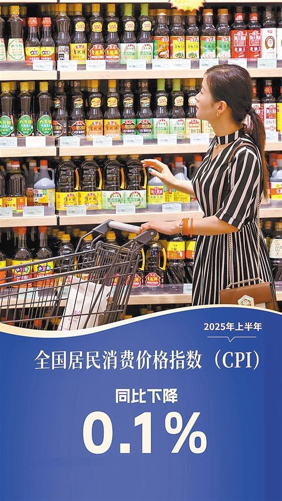 居民消费价格基本平稳,就业形势总体稳定。2025年上半年,全国居民消费价格指数(CPI)同比下降0.1%,扣除食品和能源价格后的核心CPI同比上涨0.4%,比一季度扩大0.1个百分点。
