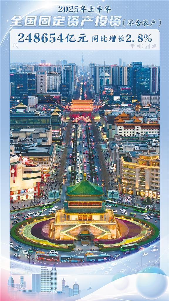2025年上半年我国市场销售增速回升,固定资产投资继续扩大。上半年,社会消费品零售总额245458亿元,同比增长5%,比一季度加快0.4个百分点。全国固定资产投资(不含农户)248654亿元,同比增长2.8%;扣除房地产开发投资,全国固定资产投资增长6.6%。