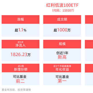 份额方面,红利低波100ETF近2周份额增长700.00万份,实现显著增长,新增份额位居可比基金2/5。