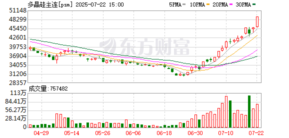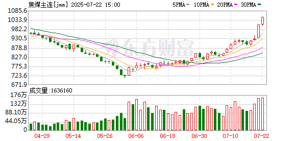 7月22日,国内期货市场黑色系再度领涨,午后,焦煤、焦炭、多晶硅等多种商品价格报出涨停。截至下午收盘,主力合约中焦煤、焦炭收于涨停,涨幅均为7.98%,玻璃涨9%,多晶硅涨8.99%,工业硅涨5.98%,纯碱涨8.01%,氧化铝也涨超6%。