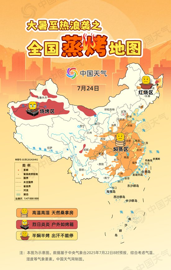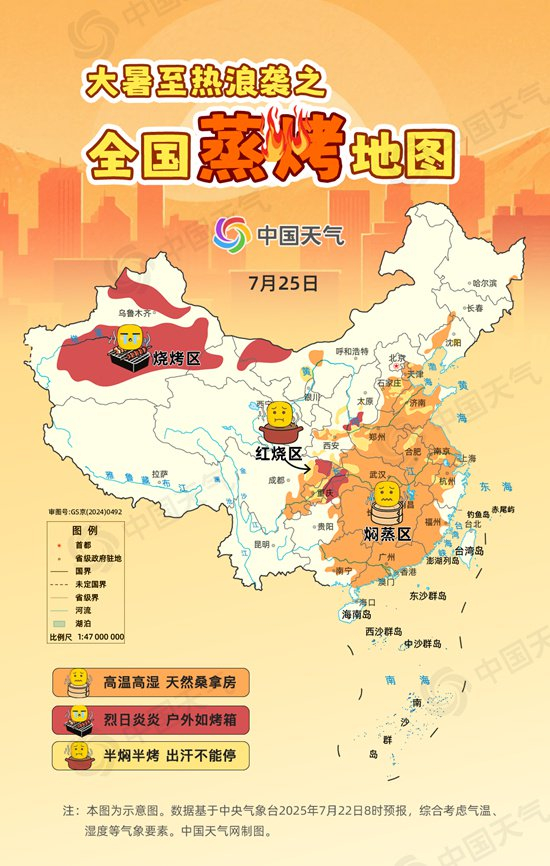 大暑至热浪袭!全国蒸烤地图出炉 十余省份开启“蒸桑拿”模式