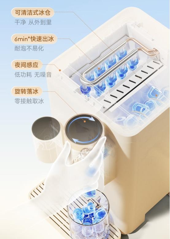 提到夏天,怎能少得了冰块?但市面上的制冰机往往存在卫生隐患,让人用得心里不踏实。碧云泉小积木G5的制冰模组,采用了净水直供与活水制冰技术,每一滴水都经过深度净化,确保冰块的纯净与安全。而且,它的活水制冰技术避免了“死水”滋生细菌的风险,让每一颗冰块都如水晶般透明、纯净。更贴心的是,旋转落冰设计让取冰过程优雅卫生,指尖零接触,彻底告别“二手冰”的细菌困扰。有了它,无论是自制冰饮还是冷敷降温,都能轻松搞定,让你的清凉从“头”开始。