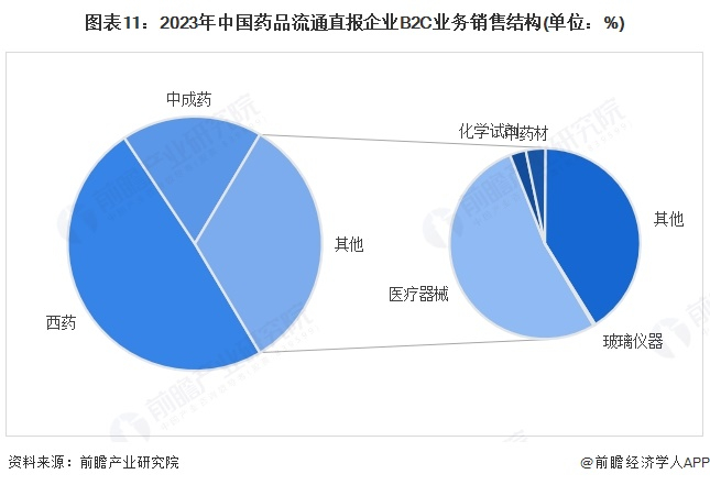 5、医药电商行业中B2B占比50%