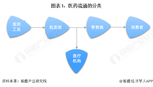 商品流通的一般渠道可分为两个环节:批发环节、零售环节;但由于医药不分业,中国药品流通领域有三个环节:药品批发环节、药品零售企业、医院门诊药房以及现在的医药电商。其中,医院门诊药房作为特殊的、具有垄断地位的零售环节,占据了主要的流通市场,药品零售通过医院、基层医疗机构、零售药店等渠道将药品最终流入到消费者手中。