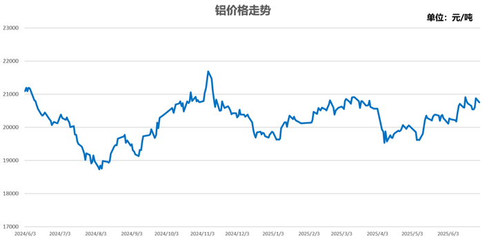 2025年6月,铝价格波动较为剧烈。截至月底,铝价格达到20750元/吨。