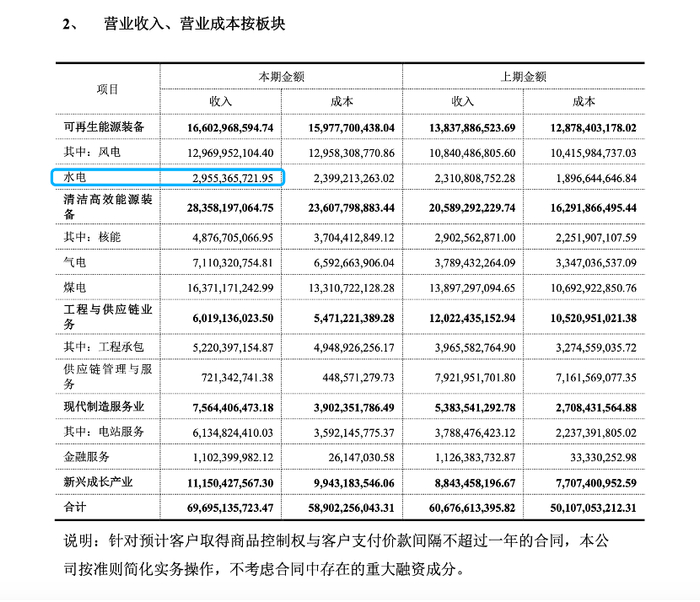 虽然营收规模不小,但东方电气的水电业务收入占比不高。财报显示,2024年,该公司水电领域的营业收入为29.55亿元,占比为4.23%。