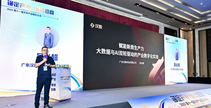 汉数科技副总裁吴必超先生受邀出席,发表《赋能新质生产力:大数据与AI双轮驱动的产业数字化实践》主旨演讲,深入分享汉数科技如何通过“产业数据云+产业招商大模型”双引擎,赋能园区产业升级和精准招商,为中国经济高质量发展注入新动力。