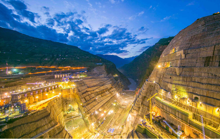 白鹤滩水电站施工夜景