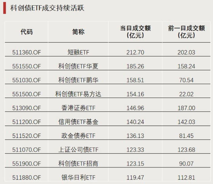 此外,短融ETF今日成交额达212.70亿元,为本周连续两个交易日成交额突破200亿元。