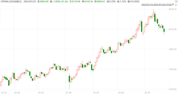 3、最近股市持续走强,但银行却在冲高后持续下跌了。