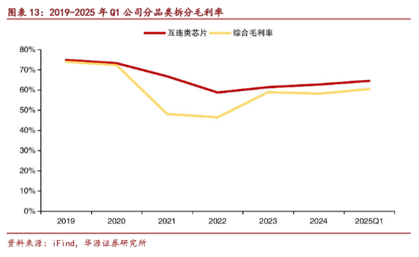三款高性能运力芯片连同DDR5一起,促进公司毛利率从2024年年度的58%提升至今年一季度的60%。