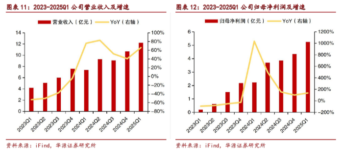 2024年实现营业收入36.39亿元,同比增长59.2%;净利润为14.12亿元,同比增长213.1%。今年第一季度延续增长势头,实现营业收入12.22亿元,同比增长65.78%;净利润为5.25亿元,同比增长135.14%。