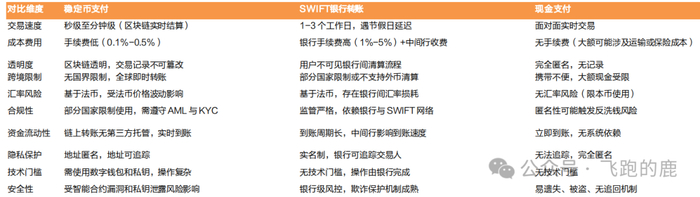 稳定币的优势:目前稳定币凭借其独特的金融特性,在效率、成本和全球化方面展现出显著优势。世界银行数据显示,全球平均跨境汇款成本高达6.7%,而稳定币交易的手续费通常不足交易额的1%。