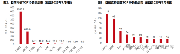 - 截至2025年6月,全球稳定币市值达2511亿美元,USDT、USDC占据主导地位,其储备资产逐步转向短债等安全资产,以增强稳定性。