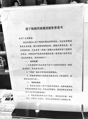 图二:汉中市一家实体店公示线下购物同城通退服务承诺书。