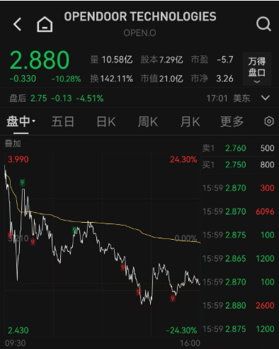 房地产科技公司OPENDOOR TECHNOLOGIES股价大幅波动,盘初一度涨超20%,收盘跌超10%,该股此前已连续六个交易日大涨,引发散户投资者追捧,成为美股“网红股”。业内人士表示,OPENDOOR TECHNOLOGIES此轮股价上涨,始于多伦多对冲基金EMJ Capital创始人Eric Jackson近来在社交媒体平台X上的一系列买入建议。