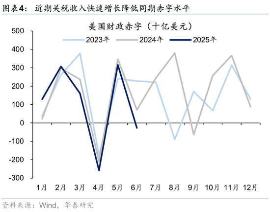 三季度美元流动性收紧的负面压力或低于市场预期,往后看全球流动性宽松可预见性更强。三季度权益资产面对的风险之一就是债务上限解决后的大规模发债导致金融流动性收紧。美国财政部预计今年三季度(自然年,下同)净发债5540亿美元,我们估算最终发债规模可能接近1万亿美元,但短期影响或小于2023年同期。1)发债规模:三季度净发债主要由两部分组成,一是赤字增长需要发债融资,二是补充TGA账户缺口。近期关税收入快速增长降低同期赤字水平,2025年至今美国赤字(6264亿美元)低于2023和2024年同期(分别为9716亿美元和7633亿美元)。以上半年的赤字降幅做季节性外推,三季度可能有4500亿美元新增赤字。TGA账户目前剩余3121亿美元,财政部计划在9月末补充至8500亿美元,缺口5379亿美元。2)结构上,财政部有动力更多发行短债。贝森特称在目前利率水平不应该增加长债发行[1]。目前美债期限溢价已经走高,假设美债利率上升至5%,其他条件不变,恒指回调幅度可能在5.3-5.7%附近。