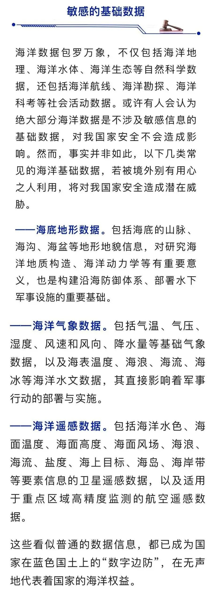 记者从国家安全部了解到,保护好海洋数据安全,维护国家海洋权益、保障海洋事业可持续发展,是维护国家安全的应有之义。