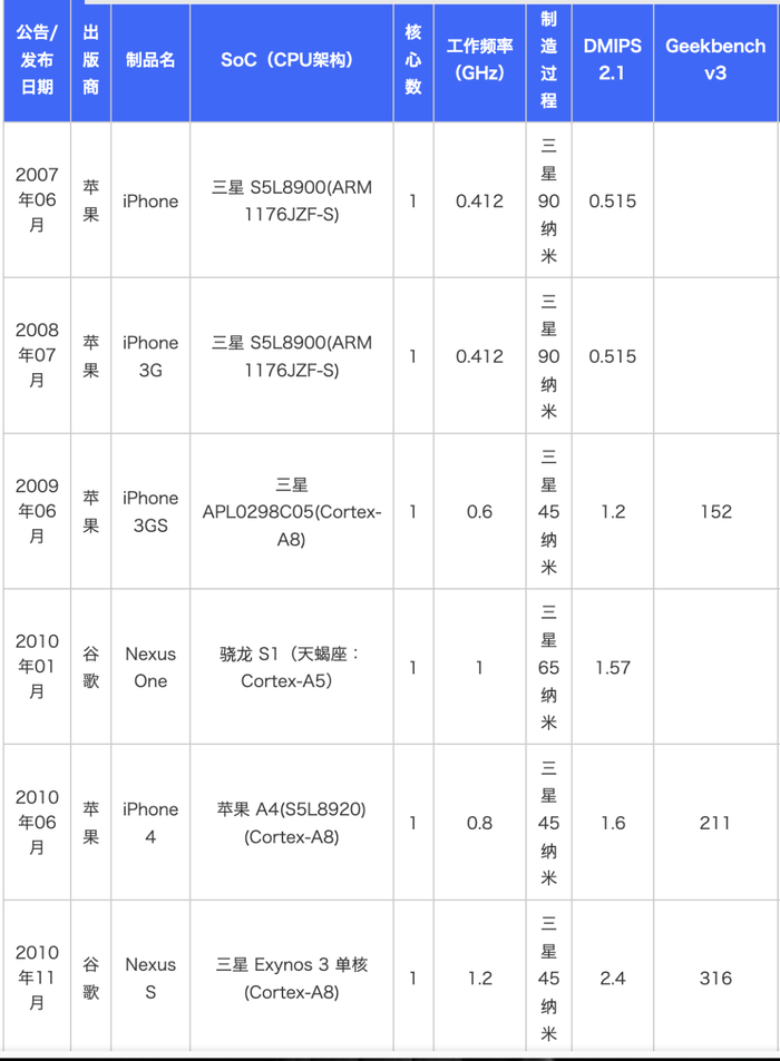 不过,2009年苹果发布的iPhone 3GS,搭载的是三星的APL0298C05,内置了Cortex-A8;2010年的iPhone 4,搭载的苹果A4,同样内置了Cortex-A8(不过运行频率略高)。