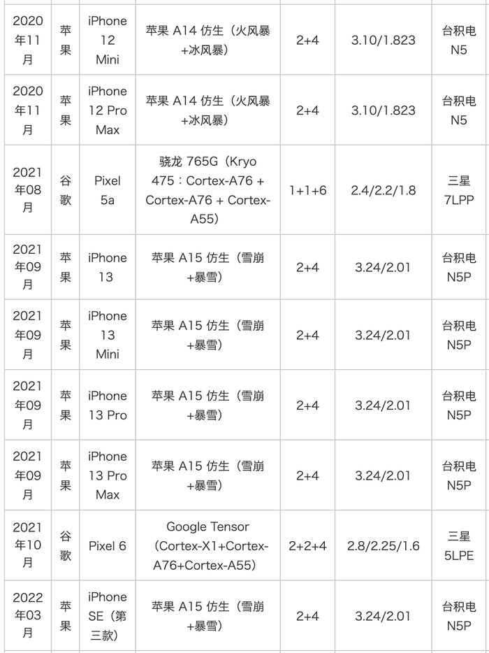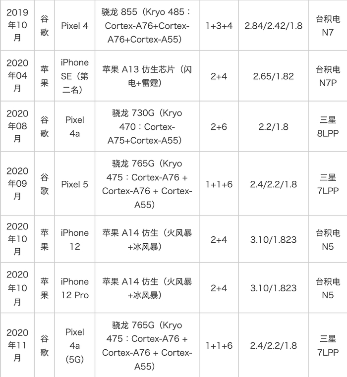 顺便说一句,我们之所以排除平板电脑,是因为平板电脑的可用功率是智能手机的两倍多(散热能力也是两倍多),因此很难将它们进行比较。这次,我们只比较每核功耗低于 1 到 2W 的智能手机。