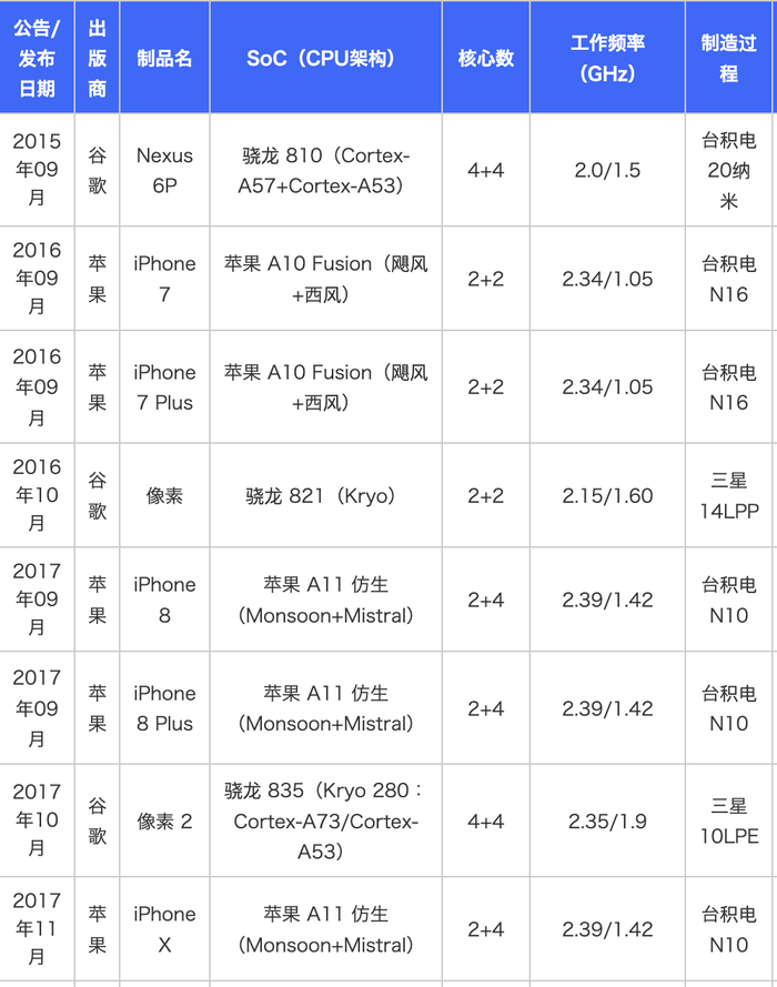 谷歌率先在 Nexus 6P 的骁龙 810 处理器上实现了 big.LITTLE 架构。次年,也就是 2016 年,苹果也在 A10 Fusion 处理器上实现了 big.LITTLE 架构。