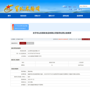 7月23日,军队采购网发布关于对山东惠发食品有限公司暂停处理公告。