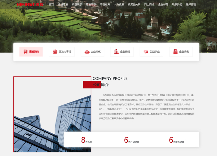 山东惠发食品股份有限公司成立于2005年2月,2017年6月13日在上海证券交易所挂牌上市,成功登陆A股主板,是一家集预制菜品研发、生产、销售和提供健康食材供应链服务于一体的综合性食品企业。