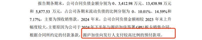 值得注意的是,加佳科技在获得Pre-IPO投资机会后,迅速在2025年第一季度成为沐曦股份的第二大客户,并在此期间支付了较高比例的预付款,为沐曦股份贡献了9095万元的单季营收。这一表现尤为引人注目,因为在此之前的年份,加佳科技从未进入沐曦股份前五大客户的行列。这一系列动作表明,加佳科技不仅在资本层面与沐曦股份深度绑定。