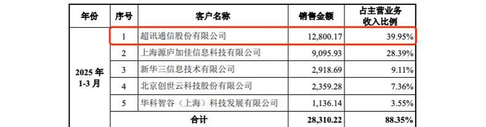 根据沐曦股份6月发布的招股说明书(申报告),超讯通信成为其第一大客户。2025年1-3月,超讯通信为沐曦股份贡献了1.28亿元收入,占沐曦股份总收入的39.95%。招股书显示,双方合作主要涉及超讯向沐曦股份采购板卡。