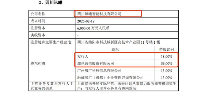 超讯通信作为沐曦股份的首要客户,不仅在业务上保持紧密合作,还通过共同投资进一步深化了双方的利益纽带。双方携手参股了两家企业:中能建(北京)智慧科技有限公司和四川讯曦智能科技有限公司。在中能建(北京)智慧科技有限公司中,超讯通信持股比例为10%,沐曦股份持股8%;在四川讯曦智能科技有限公司中,超讯通信持股56%,沐曦股份持股18%。这种股权结构和合作关系显示出双方在战略和经济利益上的深度绑定。
