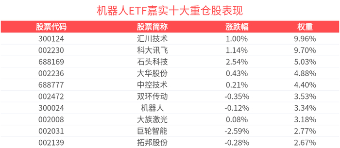 数据显示,截至2025年6月30日,中证机器人指数前十大权重股分别为汇川技术、科大讯飞、石头科技、大华股份、中控技术、双环传动、机器人、大族激光、巨轮智能、拓邦股份,前十大权重股合计占比49.58%。