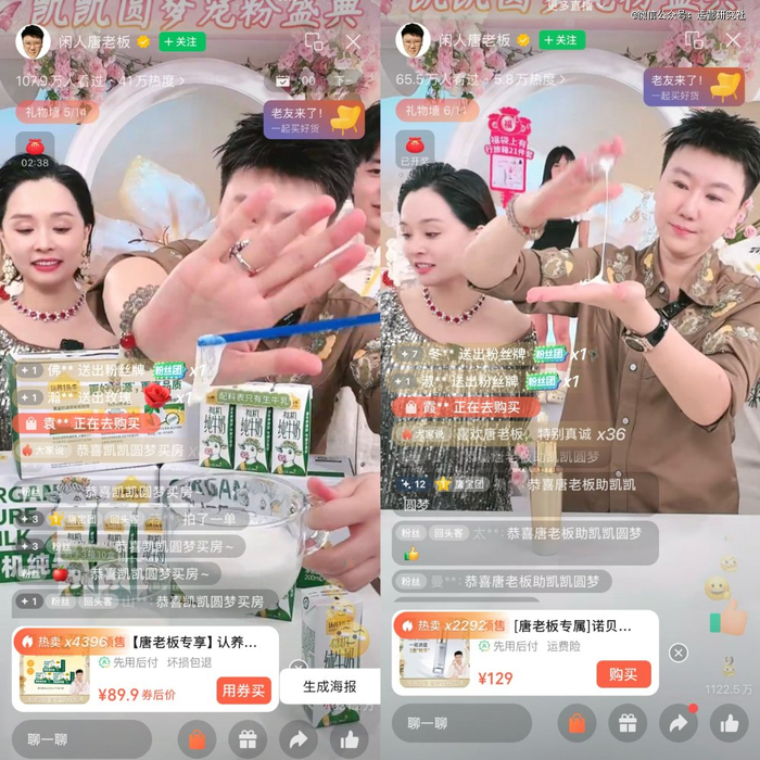 运营社蹲守直播间发现,@闲人唐老板 还有两大带货秘诀: