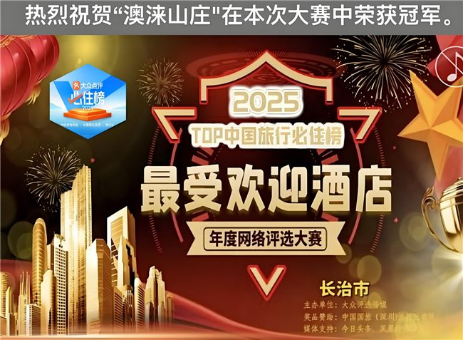 近日,2025TOP中国旅行必住榜“最受欢迎酒店网络评选大赛”圆满落幕,山西长治地区的澳涞山庄凭借超高人气和卓越品质,再度脱颖而出,蝉联冠军宝座,持续稳固其作为山西长治旅游度假首选地的地位。这一辉煌成绩不仅是对澳涞山庄过往成就的延续,更是其不断进取、追求卓越的有力见证。