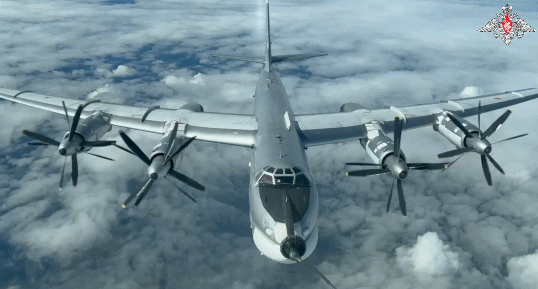 俄军图-95MS战略轰炸机在白令海执行飞行任务