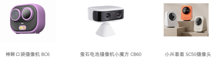在监控摄像头领域,神眸口袋摄像机BC6、萤石电池摄像机小魔方CB60、中兴小兴看看 SC50三款产品成功入选。这三款产品分别以低功耗技术、4G无网部署与隐私安全防护实现关键突破。