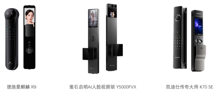 在智能门锁领域,德施曼麒麟R9、萤石启明AI人脸视频锁Y5000FVX和凯迪仕传奇大师K70 SE三款产品成功入选。这三款产品从技术、应用场景和设计等多维度重新定义了智能门锁的价值,推动了行业从被动安防向主动关怀的跨越。