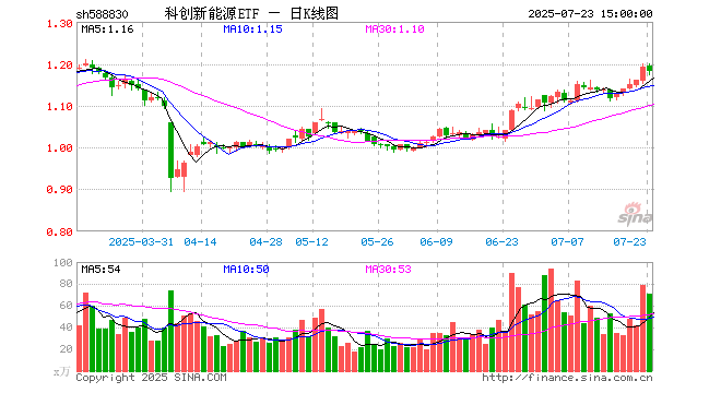 7月23日科创新能源ETF(588830)份额增加300.00万份,最新份额4.06亿份,最新规模4.79亿元