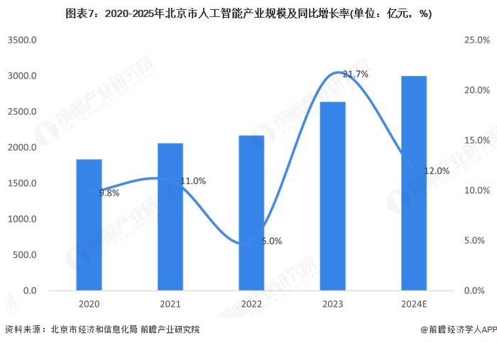 根据北京市经济和信息化局《北京人工智能产业白皮书(2024)》披露的信息,预计2024年北京全年人工智能核心产业规模突破3000亿元,同比增长超12%,提前一年完成北京市人工智能创新策源地三年实施方案目标。