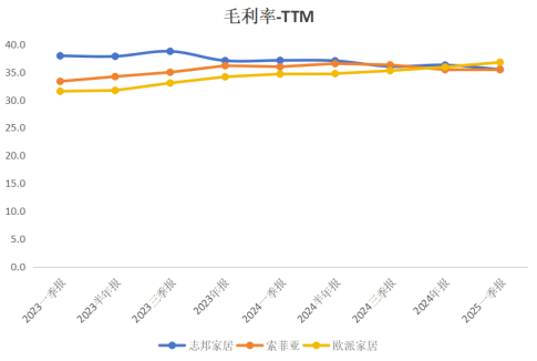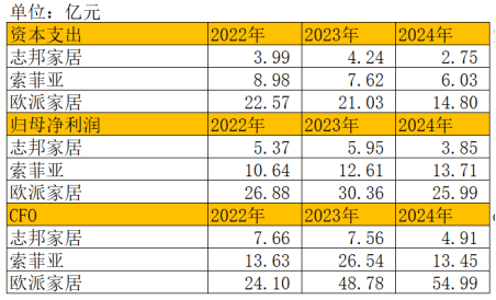 从归母净利润看,志邦家居、欧派家居的净利润在2024年均出现了下降,而索菲亚保持正增长,是因为当年处置了其他非流动金融资产获取了投资收益。