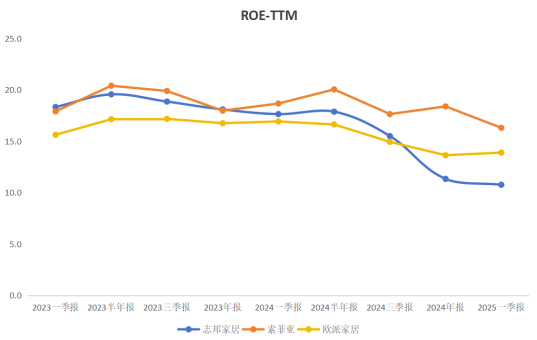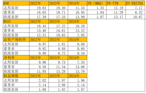 从ROE水平看,志邦家居的ROE下滑幅度偏大,2024年ROE水平:索菲亚>欧派家居>志邦家居。