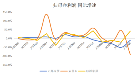 索菲亚——2025年一季度,实现收入20.38亿元,同比下降3.46%;归母净利润0.12亿元,同比下降93%。
