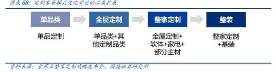 从定制品类上看,定制家居可以分为定制橱柜、定制衣柜、定制木门、定制卫浴等。行业内龙头企业已经从单一品类起家,不断横向拓展定制品类,目前已经完成了多品类布局。