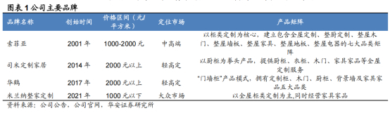 公司目前拥有索菲亚、司米、华鹤、米兰纳四大主要品牌,不同价格区间定位不同的消费者市场。