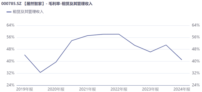 这种重租赁的轻资产模式,在行业下行周期暴露出致命短板,20年长租约下的刚性成本,与受市场波动影响的弹性收入形成尖锐矛盾。2024年,居然智家为维持出租率不得不实施租金优惠,直接导致租赁业务毛利率下滑5个百分点。