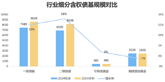 是谁贡献了含权债基的增量?从细分类别规模变动来看,一级债基和二级债基因其低波特性更受投资者青睐,构成了上半年含权债基的主要增量。