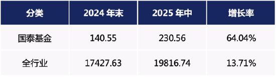 相比之下,2025年上半年,国泰基金各类型含权债基产品规模增速表现均优于同类平均。尤其是偏债混合基金,在全行业规模下降的背景下,国泰基金相关产品规模依然显著上涨。