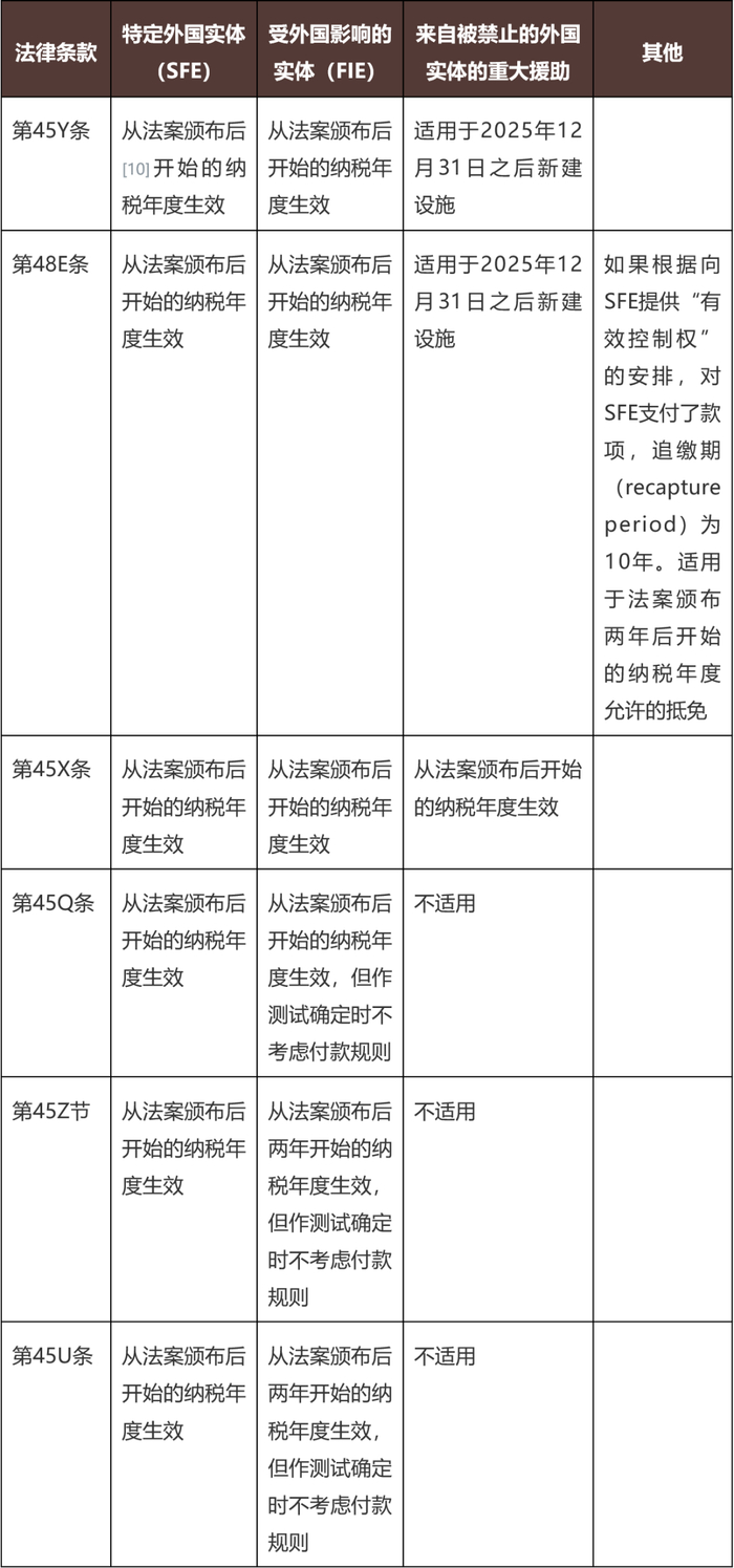 废除某些外国公司在确定纳税年度时有权延期一个月的规定:采用延期一个月纳税年度的外国公司必须改为使用其美国多数股东纳税年度,该规定对特定外国公司自2025年11月30日之后开始的纳税年度有效,并对首个受影响的纳税年度提供过渡规则。