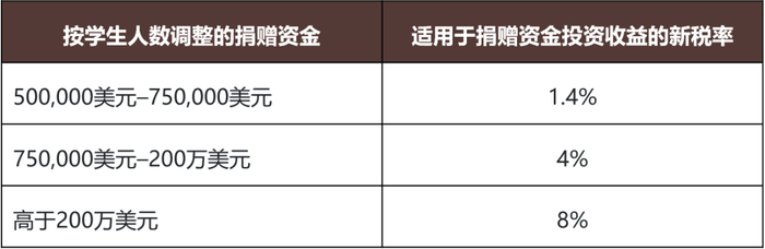 用新的税率结构(1.4%、4%和8%)取代现行适用教育机构的捐赠金投资的附加税,该税率结构自2025年12月31日之后开始的纳税年度起生效。